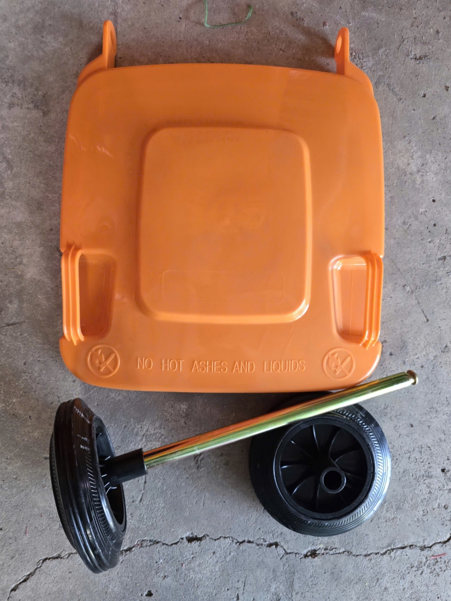 Thùng rác nhựa 120L màu cam thường được sản xuất từ nhựa HDPE nguyên sinh.